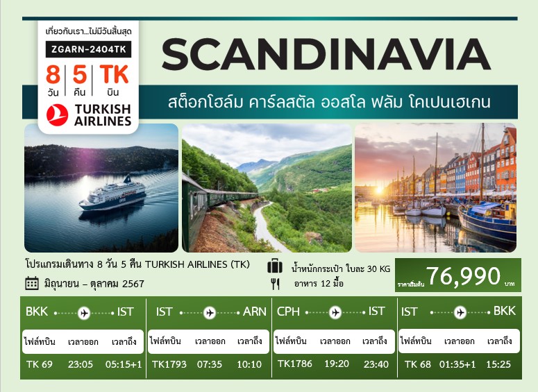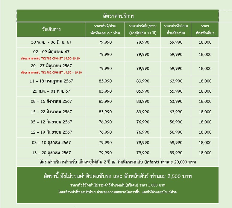 (เฉพาะ 02 – 09 / 20 – 27 มิถุนายน 2567 ไฟล์ทขากลับ TK1782: CPH - IST 14.50-19.10)