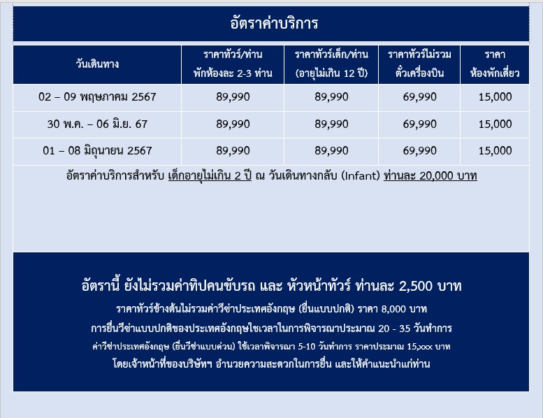 (โปรดตรวจสอบวันอิสระกับบริษัททัวร์ทุกครั้งก่อนทำการจองสถานที่ท่องเที่ยว)