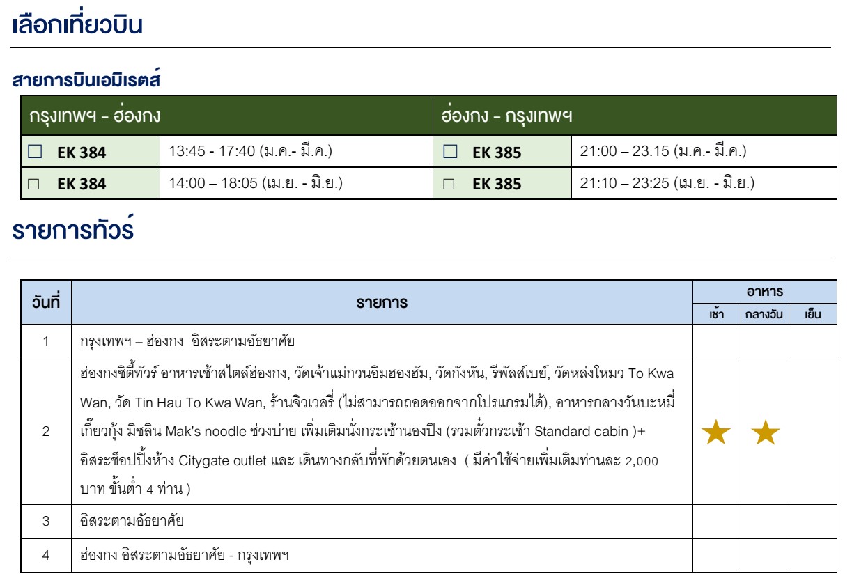1. ตั๋วเครื่องบินไปกลับ กรุงเทพ-ฮ่องกง สายการบินเอมิเรตส์