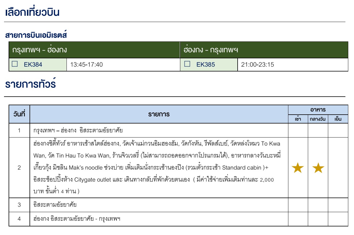 | วันแรก         กรุงเทพ-ฮ่องกง (อิสระ)   |