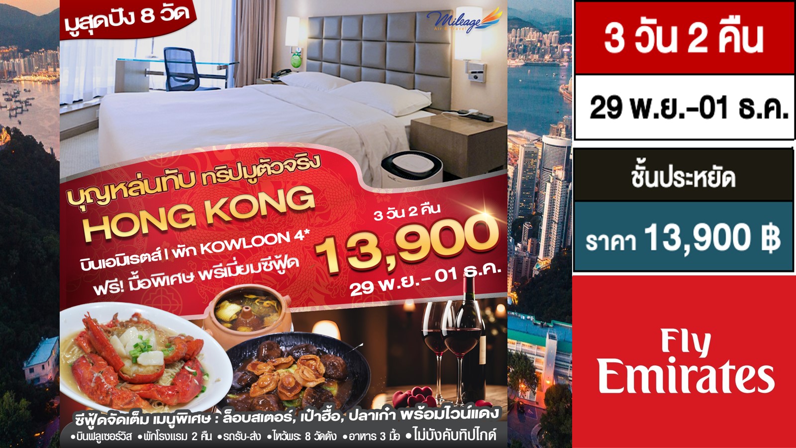 1. ตั๋วเครื่องบินไปกลับ กรุงเทพ-ฮ่องกง สายการบินเอมิเรตส์ (ชั้นประหยัด)