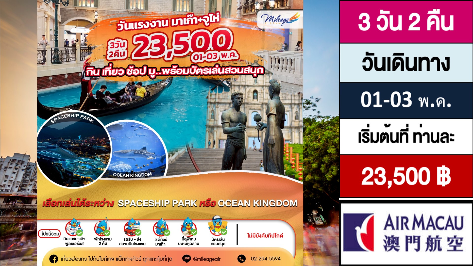 วันแรงงาน 01-03 พ.ค. มาเก๊า จูไห่ เที่ยวสองเมือง กับ 2 สวนสนุก