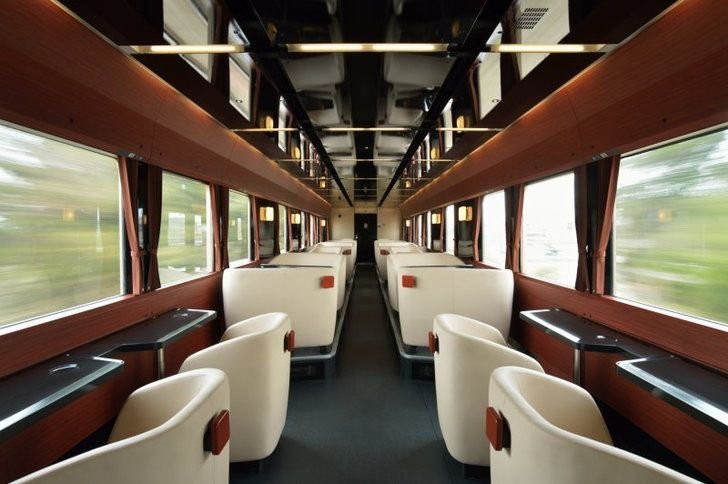 โทนสีแดงและดำทั่วทั้งรถไฟขบวนนี้รวมถึงการตกแต่งภายในดูคล้ายกับคาเฟ่แนวทันสมัยที่มาพร้อมกับที่นั่งโซฟาหนังสีขาว รถไฟ FruiTea Fukushima รองรับผู้โดยสารได้ 36 คน โดยโต๊ะจะแบ่งออกเป็นที่นั่งแบบกล่อง (box seat) สำหรับ 4 คน, 2 คน และ 1 คน ใช่แล้วค่ะ แม้ว่ารถไฟร้านอาหารส่วนใหญ่จะไม่รองรับผู้โดยสารที่เดินทางคนเดียว แต่ FruiTea Fukushima รับค่ะ นับว่าเป็นข่าวดีไม่น้อยสำหรับนักเดินทางโซโล่