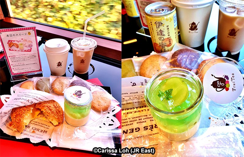 ฟุกุชิมะเป็นจังหวัดที่ปลูกผลไม้ญี่ปุ่นเป็นจำนวนมาก เมื่อนำผลไม้อร่อยๆ ของจังหวัดมารวมเข้ากับฝีมือชั้นเยี่ยมของช่างทำขนมท้องถิ่น จึงได้ออกมาเป็นเมนูขนมหวานมากมายที่ถูกนำมาเสิร์ฟบนรถไฟ เมนูจะเปลี่ยนไปทุกเดือน ทำให้นักท่องเที่ยวสามารถลิ้มลองรสชาติที่ดีที่สุดในฤดูกาลนั้นๆ ได้